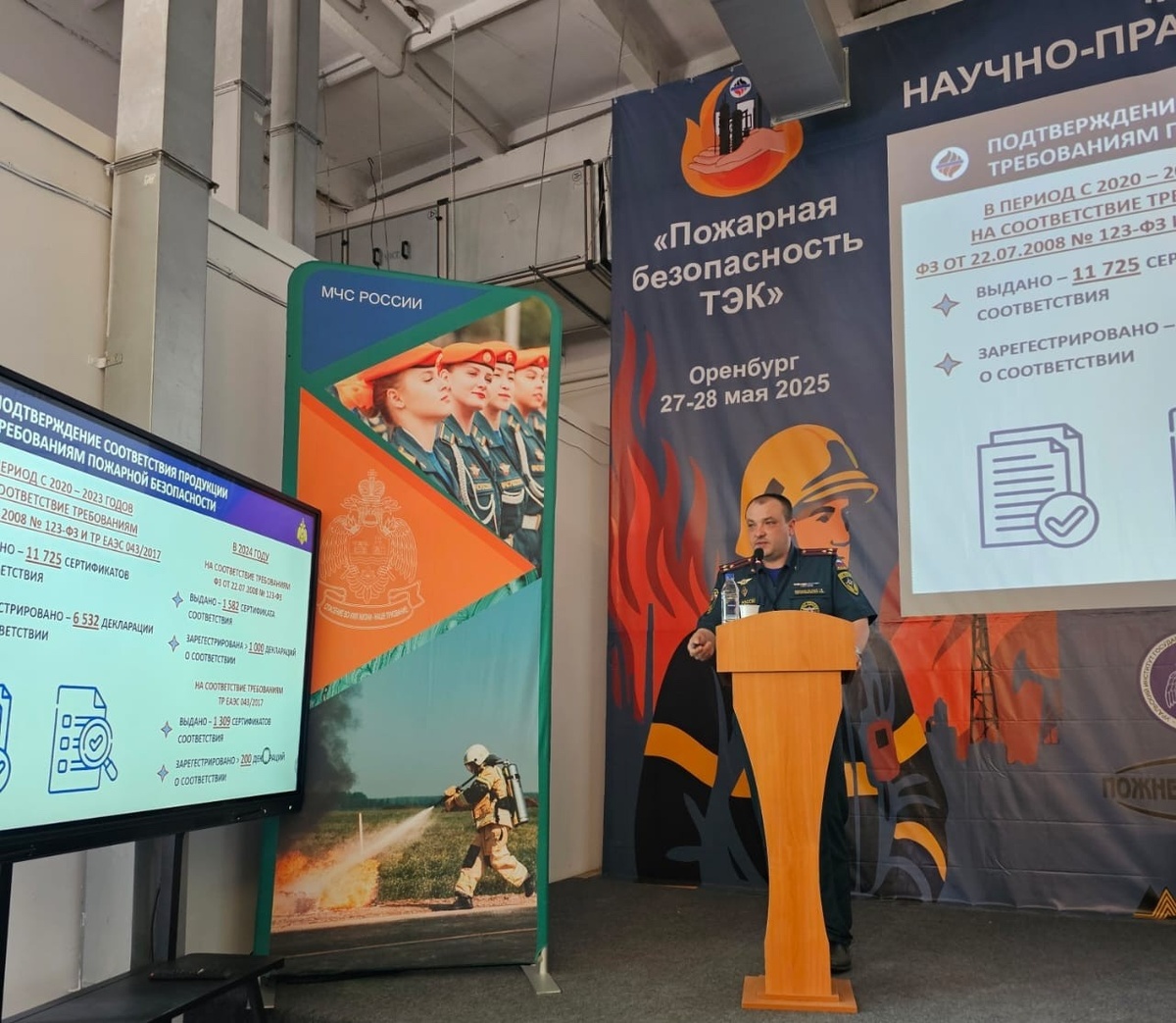 28 мая 2025 г. в рамках «Международной научно-практической конференции «Пожарная безопасность объектов ТЭК» состоялся круглый стол на тему «Актуальные вопросы технического регулирования в области пожарной безопасности» под председательством руководства Департамента надзорной деятельности и профилактической работы МЧС России, Департамента образовательной и научно-технической деятельности МЧС России. В ходе работы круглого стола обсуждались вопросы совершенствования нормативных правовых актов и нормативных документов по пожарной безопасности, текущий статус эксперимента и обязательные требования к маркировке отдельных видов пожарно-технической продукции, проблемы оценки соответствия продукции, применяемой в проектных решениях систем противопожарной защиты зданий и сооружений, проблемы разработки и согласования межгосударственных стандартов в поддержку требований технического регламента Евразийского экономического союза «О требованиях к средствам обеспечения пожарной безопасности и пожар