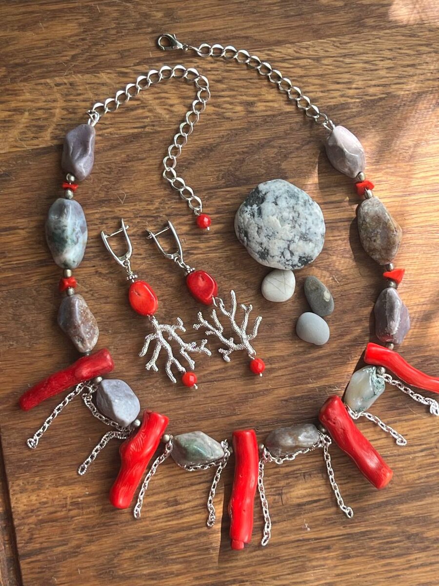 Лента моя бледновата, добавлю смелых красочек. Лето всё таки почти) ☀️ Колье из кораллов, яшмы чУдного цвета: цвета камней долго лежавших в море, и всякой серебристой фурнитуры, цепочек. Вообщем, про море 🌊 К колье есть другие серьги, из яшмы, сейчас покажу в своих сторис) Сегодня как алкоголики ищут заначку, я искала заначку швенз🙃 думала, ну вдруг не все потратила?… пока не нашла, зато вместо серег сделала колье, которое давно хотела) Как Вам? Слишком смело? Или норм?