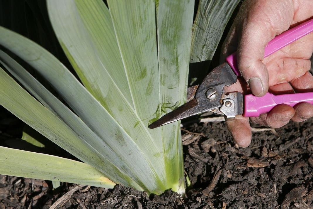 Двухэтапная обрезка ирисов после цветения: стимулирует прирост корневищ и предотвращает гнили
