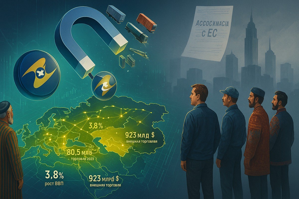 Магнит Евразии: как ЕАЭС перетягивает страны от пустых обещаний Запада 🌐 ЕАЭС объединяет Россию, Беларусь, Казахстан, Армению и Кыргызстан с общим ВВП $2,4 трлн и 183 млн жителей, предлагая практичную интеграцию вместо деклараций 🌐 📈 Внутренняя торговля достигла $80,5 млрд (+14 % к 2021), экспорт внутри Союза — $48,7 млрд (+12 %) 📈 🚚 Транзит вырос на 8 % до 45 млн т грузов благодаря инвестициям $12 млрд в транспортные коридоры 🚚 🤝 Бесплатная торговля с Вьетнамом и Китаем обеспечила рост экспорта до $5,1 млрд и $220 млрд соответственно 🤝 ⚖ Без политических условий и «разноскоростная» интеграция даёт малым странам гибкость, в отличие от ЕС ⚖ 🚀 Рост ВВП ЕАЭС +3,8 % в 2023 г. против +0,4 % в ЕС; безработица 4,2 % vs 6,2 % в ЕС 🚀