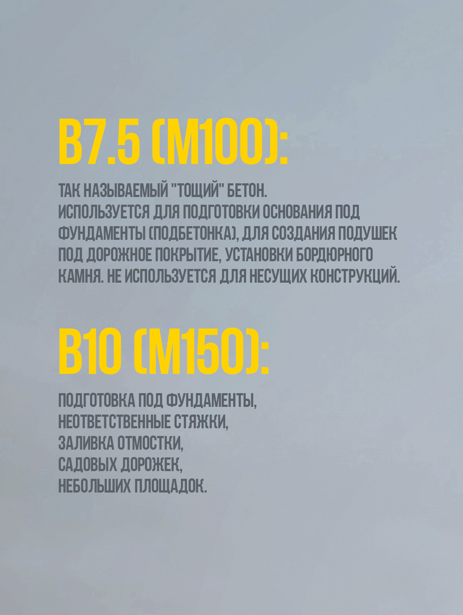 Выбор класса бетона всегда должен строго соответствовать проектной документации и учитывать все нагрузки, условия эксплуатации и климатические особенности региона.