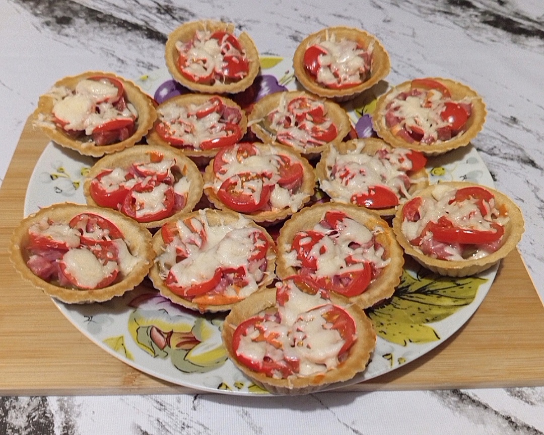 Тарталетки - пиццы Приготовьте такие вкусняшки своим детям.Это отличная альтернатива обычной пицце.Кладём в ёмкость столовую ложку майонеза. Затем столовую ложку кетчупа. Всё перемешиваем. Выкладываем вниз тарталетки слой нашего смешанного соуса. Нарезаем кружочками солёные огурчики. Выкладываем в тарталетки сверху на соус. Нарезаем кубиками копчёную колбасу. Выкладываем сверху на маринованные огурцы. Нарезаем кружочками помидоры черри. Выкладываем сверху на колбасу. Натираем на тёрке 100 грамм твёрдого сыра. Посыпаем сверху наши тарталетки. Выкладываем на противень фальгу.Смазываем фольгу подсолнечным маслом.Выкладываем на фольгу наши тарталетки и запекаем в печи при температуре 180 градусов 10 - 15 минут. Наши тарталетки - пиццы готовы.ВСЕМ ПРИЯТНОГО АППЕТИТА!!!🍽️👍