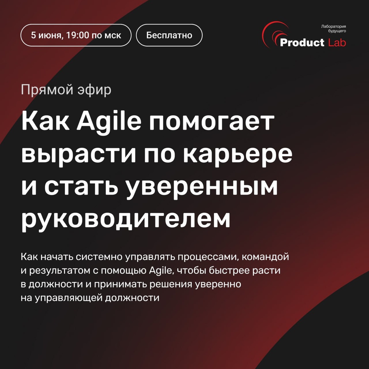 💥 Как Agile помогает вырасти по карьере и стать уверенным руководителем 🗓 5 июня в 14:00 по МСК – присоединяйтесь к бесплатному эфиру, где узнаете, как начать системно управлять процессами, командой и результатом с помощью Agile, чтобы быстрее расти в должности и принимать решения уверенно на управляющей должности Что вы получите от эфира? — Поймете, почему “хорошо работать” ≠ карьерный рост — Узнаете, как Agile помогает выстроить систему управления — Разберетесь, какой подход — Scrum, Kanban или свой — подходит вам — Получите шаги, с которых начинается рост в управленца — Узнаете, чем наш курс помогает расти, а не просто «узнавать новое» — Ответы на вопросы и полезные советы от эксперта Что разберем на эфире ✓ Как выстраивать процессы, а не просто “делать задачи” ✓ Что такое Agile-мышление и как его взрастить ✓ Scrum, Kanban или что-то своё: как выбрать подход, который улучшит метрики команды ✓ Типовые ошибки начинающих управленцев в Agile — и как их избежать Кому будет полезн