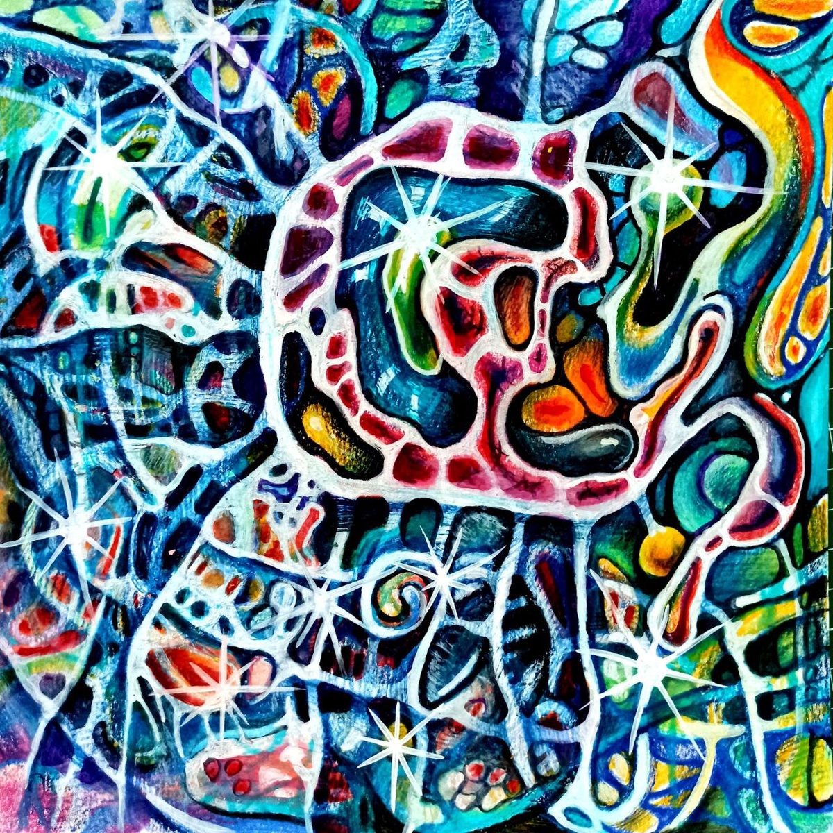 Олеся Овчинникова: "Алгоритм Незримое. Курс "Нейрохудожник" инструктора Людмилы Коструб. Тема: Продуктивное применение моих знаний и навыков. Чтой-то опять странное получилось, но мне нравится))) Вижу ухо и кучу полок с красивостями)))) Видимо пойму, когда Всё проявится))) Рисуем дальше)))"