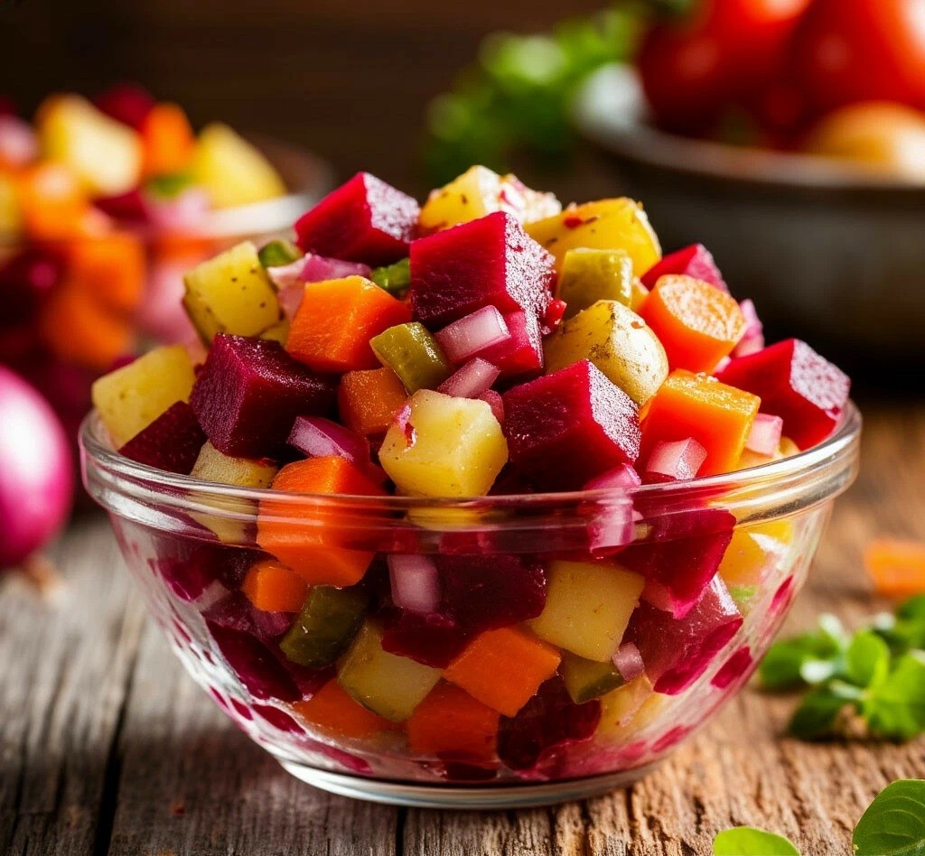 Винегрет – это простой, но очень вкусный и полезный салат из отварных овощей, который является частью русской и украинской кухни. Его название происходит от французского слова “vinaigrette”, обозначающего заправку на основе уксуса и растительного масла. Винегрет – это не просто салат, это яркое воспоминание о детстве, о бабушкиной кухне, о теплых семейных ужинах. В нем сочетаются простые, доступные ингредиенты, которые вместе создают неповторимую гармонию вкусов. Предлагаем вам классический рецепт винегрета, который можно легко приготовить дома.