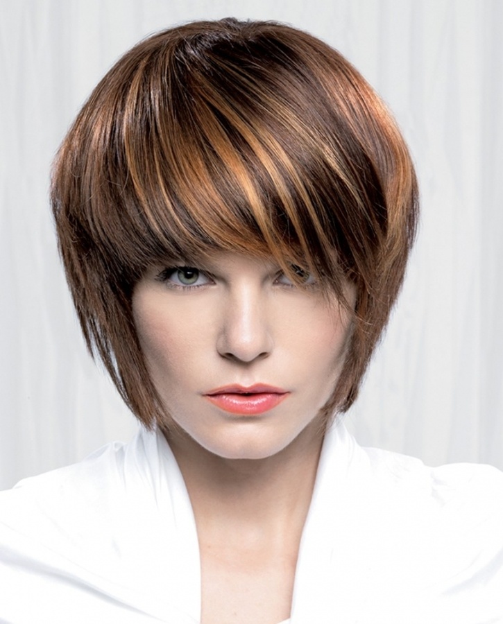 - Может быть с челкой любой длины или без неё, с передними прядями, уложенными набок.