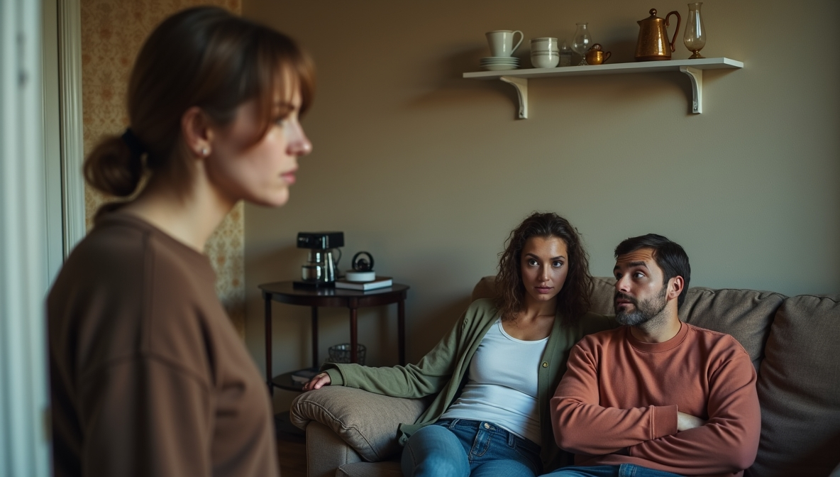 Марина тихо открыла дверь ключом. В прихожей стояли женские туфли — не её. Она прошла к гостиной и замерла. На диване сидели Андрей и Инна, очень близко друг к другу. Слишком близко для дружеского общения.