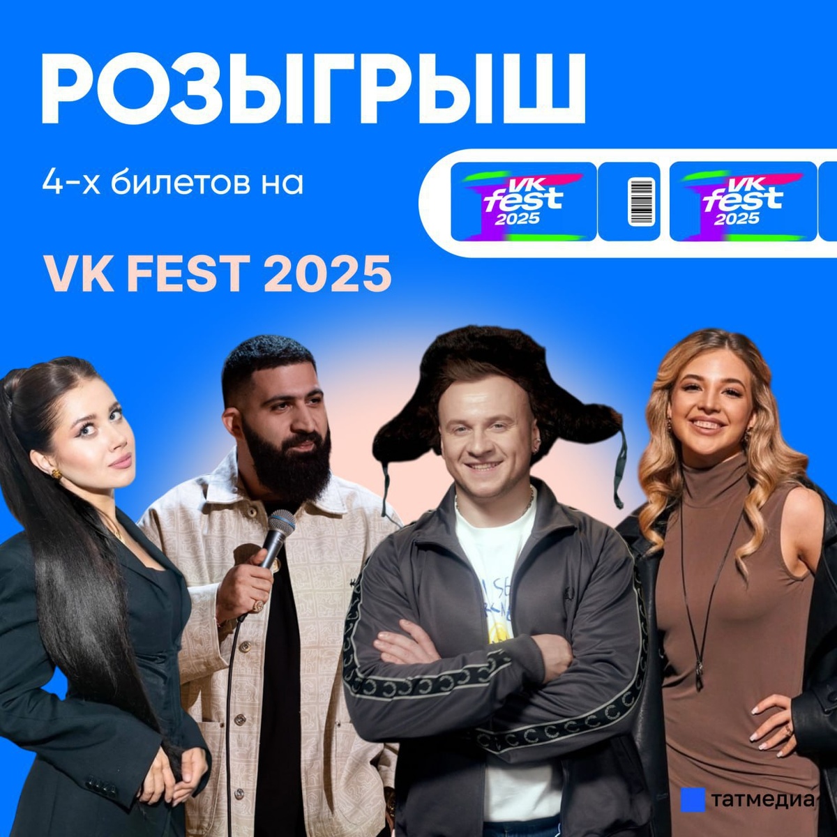 🪩🎟Уже 29 июня пройдет VK Fest 2025: а мы напоминаем о розыгрыше четырех билетов на это масштабное событие Инфлюенсерами фестиваля станут: Валя Карнавал, Олеся Иванченко, Дмитрий Журавлев, Гурам Амарян и другие. Для участия в конкурсе нужно: 🔹 Подписаться на канал ТАТМЕДИА 🔹 Нажать на кнопку «Участвую!» Итоги конкурса мы подведем 5 июня в 15:00! Генератор выберет 2 людей, которым мы подарим по 2 билета. Всем удачи! Напомним, мы регулярно проводим конкурсы в нашем канале. Среди призов - premium-подписки в Telegram. Следите за обновлениями. @tatmediaofficial