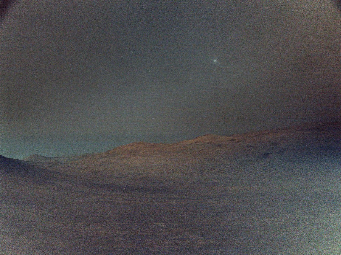 Вот как выглядит рассвет на Марсе — с шумом, звёздами и маленьким спутником