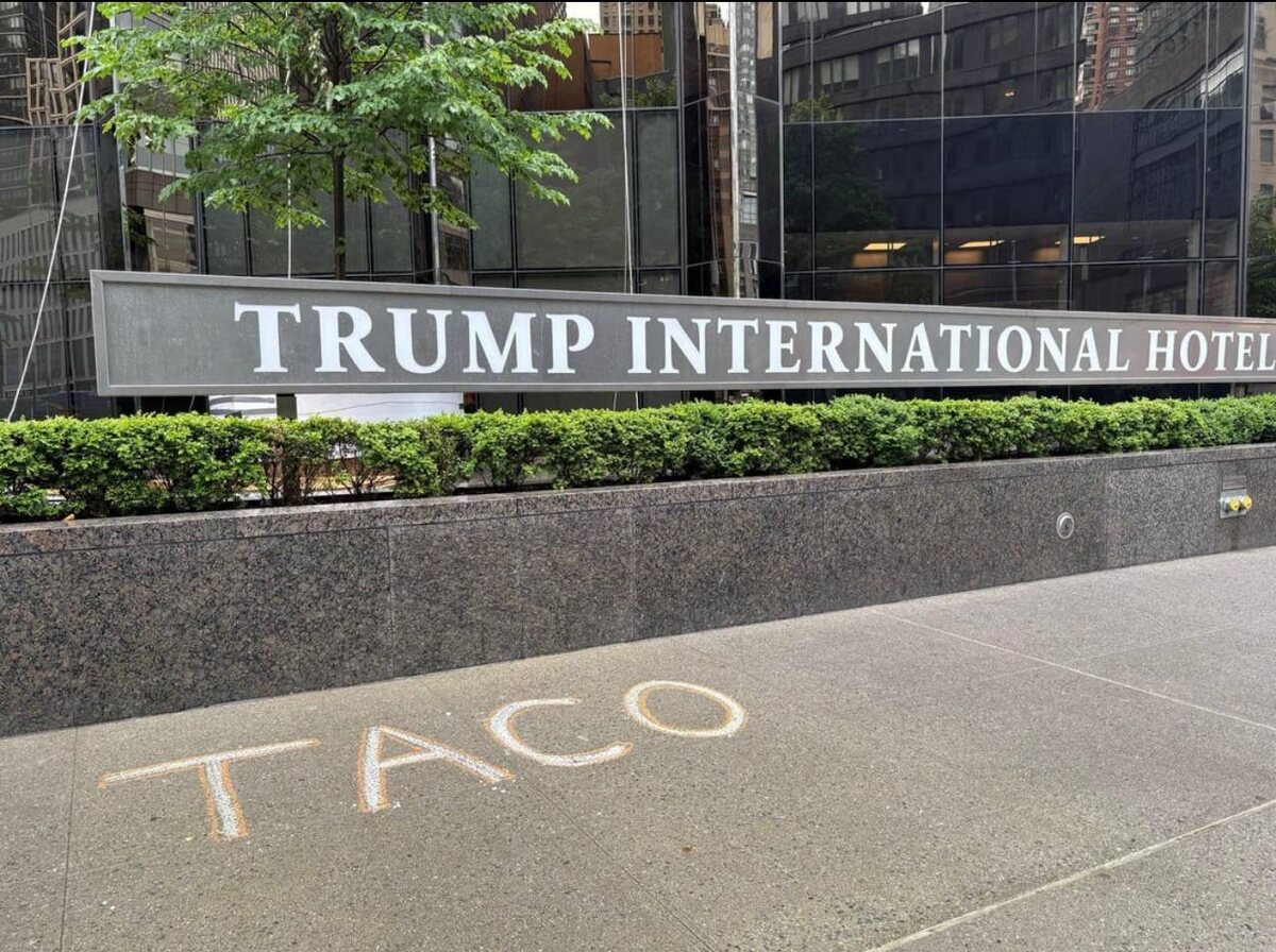 Трейдеры с Уолл-стрит придумали новое прозвище для Трампа. Теперь он наш слон ТАКО. Тако от английской аббревиатуры TACO (Trump Always Chickens Out), что переводится как «Трамп всегда трусит». Трамп на это уже обижается, его противники радуются. Вот с утра гадости на асфальте написали. #расширяемкругозор