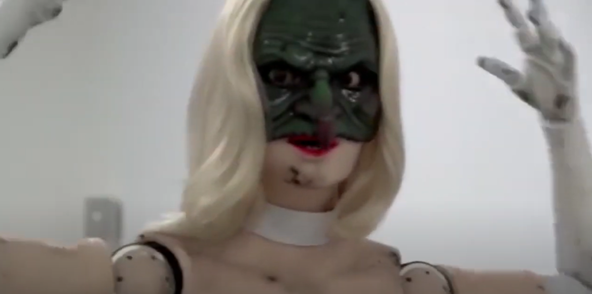 Этот робот, созданный художником Джорданом Вольфсоном, представляет собой аниматронную скульптуру, сочетающую металлический каркас и силиконовую кожу для максимальной реалистичности. Внешне он изображает женщину в грязной, обгоревшей одежде, на лице которой надета маска, напоминающая ведьму. Рот робота заполнен искусственными гнилыми зубами, что усиливает ощущение неестественности.