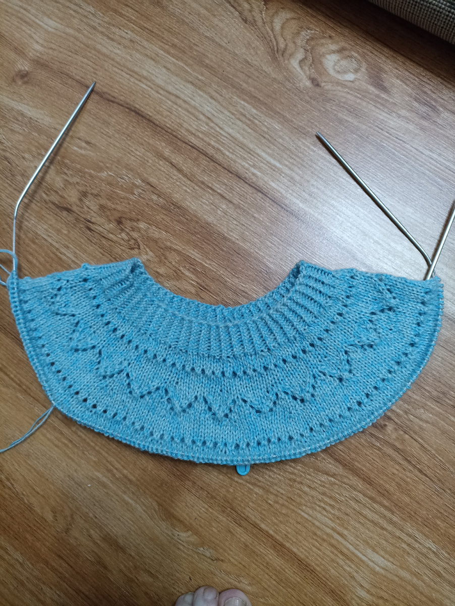 Девчата! Всем здравствуйте! Года не в счёт , мы в любом возрасте остаёмся девчатами. Вначале хочу сказать спасибо всем написавшим комментарии , очень приятно читать и общаться с вами ,узнавать чуть больше о вас , кто что вяжет ,чем занимается. А сегодня о продвижении в моём вязании кофточки. Она на этом этапе. Так вот выглядит моя кокетка . Как я рассчитывала и как вяжу. Вначале вязала резинку 1 на 1 по кругу. Набрала 113 петель на спицы номер 2 и связала 10 рядов по кругу. Вязала лицевую петлю за переднюю стенку по восточному , с нижним захватом нити. Это ниточку берём спицей снизу. Обычно лицевую вяжем спица сверху а здесь захват нити наоборот. Надо наверное снять видео как я вязала резинку , как вы думаете? Напишите кто не знаком с таким вязанием лицевой петли по кругу. Изнаночную вязала бабушкину за переднюю стенку и получается ровная резинка , скрещенные петли с лицевой и изнаночной стороны. А сейчас почему 113 петель. 1 петля для замыкания в круг, останется 112. Вначале связа