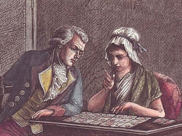 И Мария встала за прилавок, а в свободное время она занималась гаданием на кофейной гуще, хиромантией, магией чисел, а еще картами. Вскоре карты обрели тот самый вид, который и сейчас называют картами мадам Ленорман. Эта колода, воссозданная лишь по воспоминаниям очевидцев, и сейчас в арсенале разных гадалок и эзотериков (в большинстве своем, шарлатанов и прохиндеев).