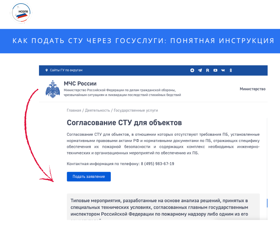 Выполнение СТУ — законный способ обеспечить безопасность объекта, как это прописано в статье 6 закона №?123-ФЗ. А вся процедура согласования регулируется приказом МЧС №?710. Как подать заявку: шаг за шагом