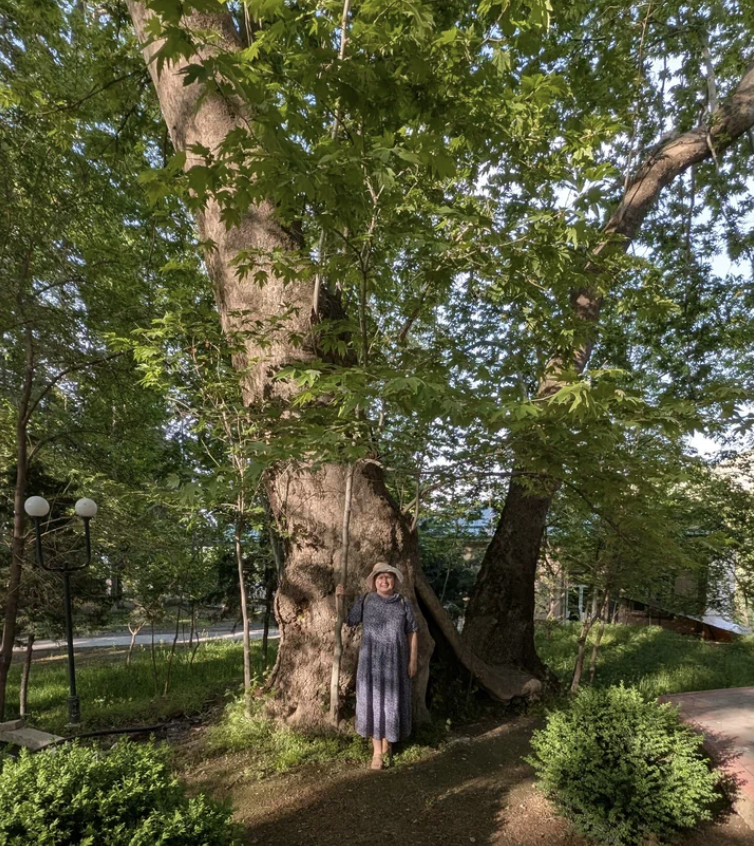 В 40 км от Самарканда есть место, где можно погулять в тени чинар, которым, как говорят, уже около тысячи лет! Уж не знаю, правда это или нет, как и кто это проверил. Теоретически надо дерево спилить и кольца посчитать годовые, а они стоят! Впрочем, в Википедии сказано, что самому старому платану на земле уже 2300 лет, так что вполне возможно, что это правда. Место это называется КОМПЛЕКС "ЧОР-ЧИНОР", и находится в городе Ургут. Согласно легенде, давным-давно Ходжа Абду Талиб - правитель Ургута - посадил четыре дерева вокруг источника. После своей смерти примерно в 866-867 годах, Абду Талиб был похоронен у подножия посаженного им платана. И вот у этого места есть второе название "Ходжа Чор-Чинор". Под тенью чинар находится мечеть, которая была построена по приказу
