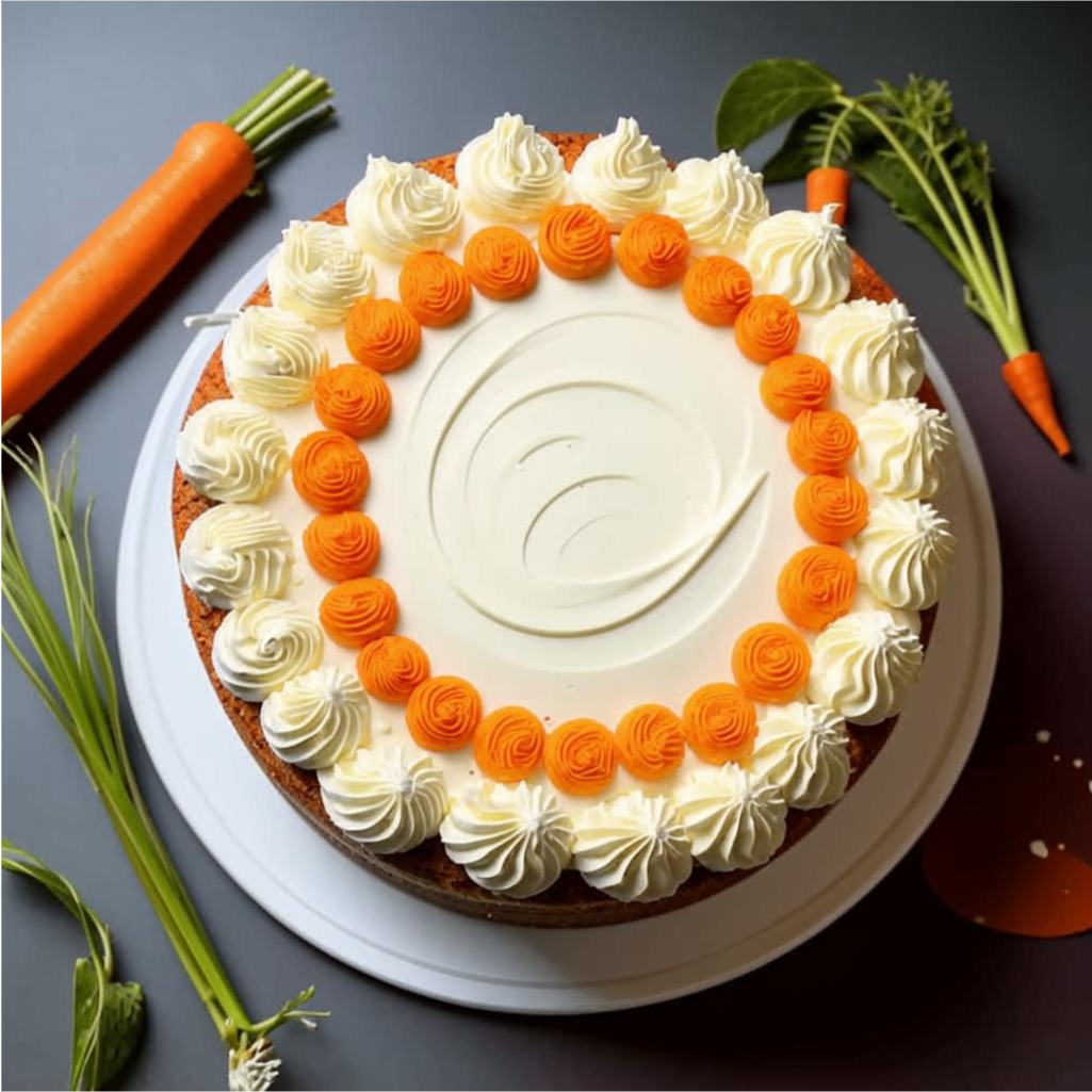 10. Украсьте торт цветным кремом, создав рисунок морковок. Поставьте в холодильник на 3-4 часа для пропитки.