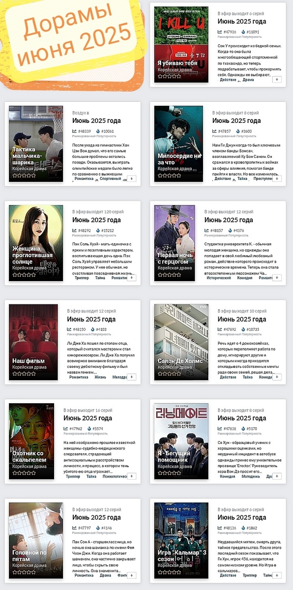 На этот раз я решила не запариваться и просто сделать информационный каллаж. Что будет на самом деле в дорамах мы узнаем уже совсем скоро! Начнём с представителей Южной Корее 😎 Сразу скажу, что я жду финал истории про кальмара, охотников за скальпелем, никакой пощады и наш фильм. Остальные гляну, но кроме тактики мальчика-шарика, не мой жанр) Я честно попыталась нырнуть в мир выхода китайских новинок и поняла, что там такой поток, что мама мия их реально столько снимают 😵💫 Поэтому остановилась на тех, которые будут в скором времени. Вот постер к дораме Желание охоты очень даже интересный, но 50 серий 😅 я подумаю, хотя может по 1 серии я пойму, что не моё и вообще можно не мучиться) Я за систематизацию и структурирование, поэтому всегда все в кучке, чтобы одна страница = одна тема, а не размазывать по слову на страницу. Поэтому большие статьи пишу редко, не люблю воду лить и слова плодить. Только эмоции! 😉 Какую новиночку ждёте? П. С. Надеюсь Джен не слопает качество кадров
