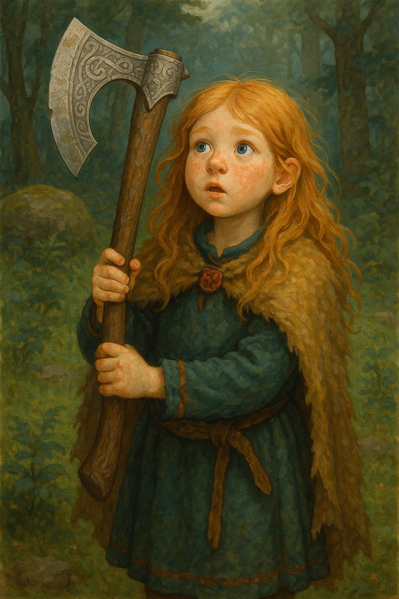 Глава I. Тайна под мхом Где-то среди суровых скандинавских фьордов, в деревне, затерянной среди ледяных лесов, жила девочка по имени Астрид. Она была дочерью травницы, но душой — воин. У неё были сны, в которых гремели битвы, пели валькирии и горели небеса. Однажды, пробираясь через древний лес в поисках редких трав, Астрид почувствовала под ногами нечто твёрдое. Это был топор. Не ржавый и не сломанный — а сверкающий, украшенный древними рунами. Когда она коснулась его, руны вспыхнули, и лес затих, словно весь мир затаил дыхание. В этот момент перед ней открылся портал — круг света в воздухе, мерцающий, зовущий. Так началось её путешествие. Глава II. Первый мир — пепел и война Портал вынес её в разрушенный мир, где небо было чёрным от пепла, а земля — изранена войной. Здесь люди сражались с демоническими созданиями, что пришли из глубин гор. У них не было оружия, способного противостоять злу. Но топор в руках Астрид раскрыл своё настоящее имя — Эйнхёрн, Топор Врат. Он был выкован в