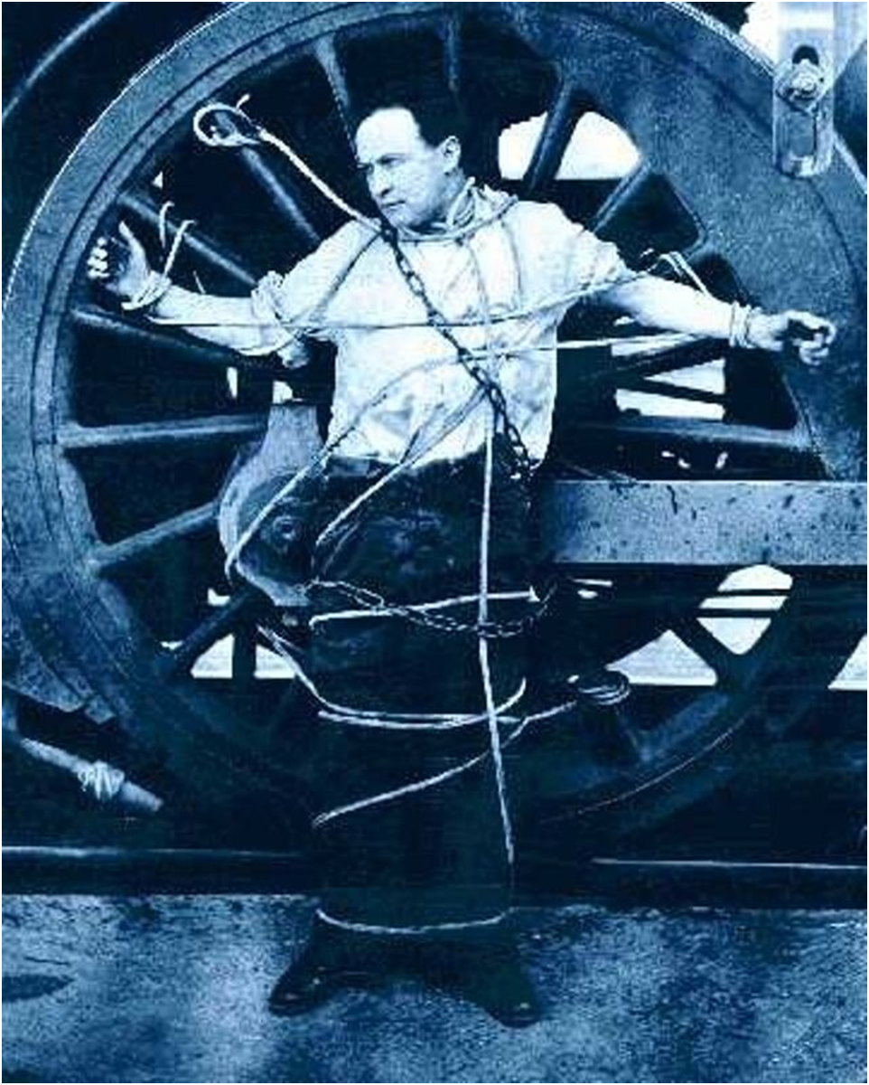 Но... не всё было так просто. Подобных Гудини фокусников тогда было хоть пруд пруди. В том числе и тех, кто освобождался на сцене от, казалось бы, крепких кандалов. Чем же было привлечь публику?