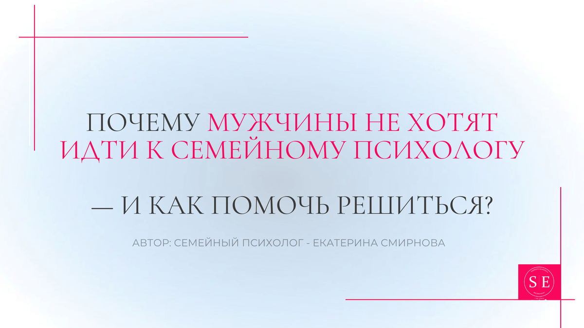 Обращение к семейному терапевту требует открытости и обсуждения личных чувств. Для мужчин, не привыкших к такому уровню эмоциональной откровенности, это может быть пугающим. Они опасаются быть осуждёнными или неправильно понятыми.