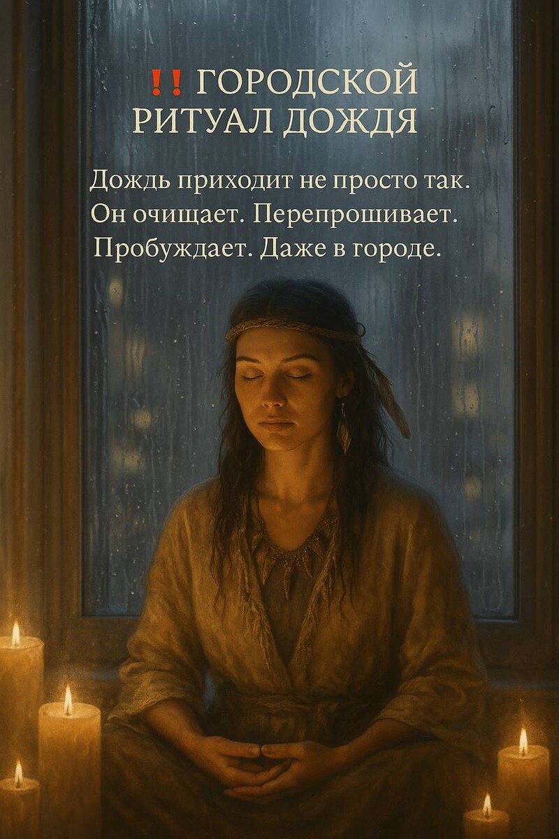Дождь приходит не просто так. Он очищает. Перепрошивает. Пробуждает. Даже в городе. Ты слышишь, как капли бьют по подоконнику? Это не просто шум. Это язык воды, через который с тобой говорят Духи. Каждый дождь — это окно. Возможность сбросить старое и пригласить новое. Даже в ритме города ты можешь провести маленький ритуал силы: 1. Ритуал Отпускания (балкон / окно)😔 Открой окно. Встань рядом. Представь, как все обиды, усталость, напряжение — уходят в капли. Скажи вслух: «Я отпускаю всё, что больше не моё. Да будет очищение.» И просто дыши. 2. Ритуал Призыва (прогулка под дождём)🦋 Надень тёплую одежду, выйди на улицу и иди без спешки. С каждым шагом — повторяй: «Я иду в своей силе. Я зову своё новое. Я готов(а) принять.» Слушай, какие образы приходят. Возможно, ты почувствуешь присутствие тотема. 3. Медитация Слияния (домашняя практика)🤟 Сядь у окна, зажги свечу, включи звук дождя (или слушай реальный). Положи руки на сердце. Представь, как дождь проходит сквозь твоё поле, см