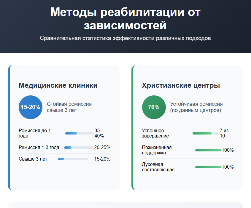 В этих условиях особую актуальность приобретает вопрос выбора метода реабилитации. Обычно пациенты и их родственники стоят перед дилеммой: обратиться в традиционную наркологическую клинику или в христианский реабилитационный центр. Поскольку каждый из этих подходов имеет свою специфику, важно понимать принципиальные различия между ними.