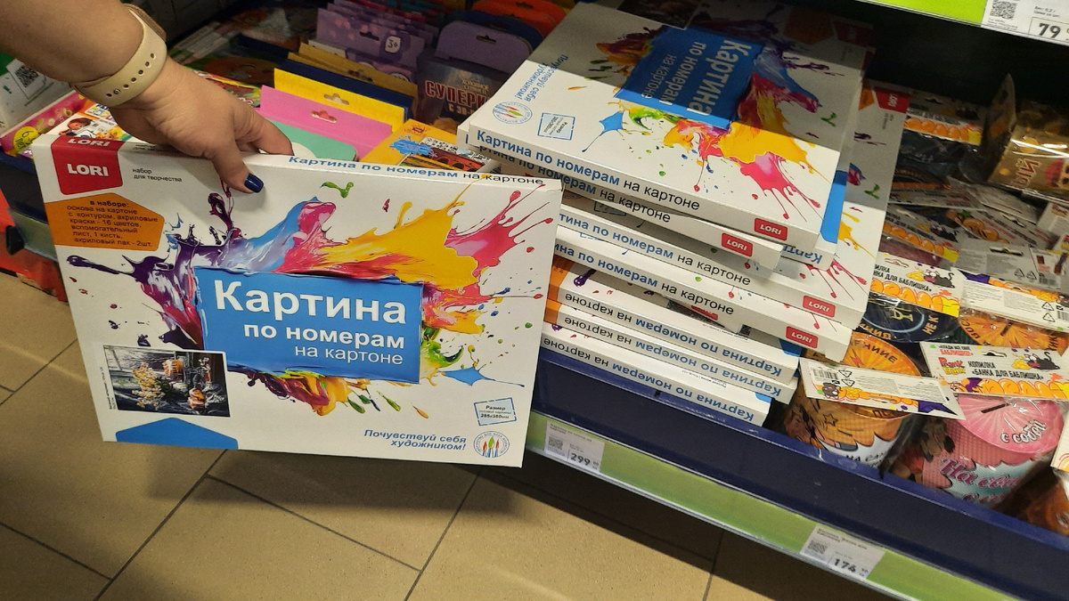 Подробная инструкция, меры предосторожности, а также образец картины указаны на упаковке. Размер готовой картины: 285х380 мм. Состав: дерево, полимеры, акриловая дисперсия, пигменты, наполнитель, вода, добавки. Товар представлен в ассортименте. Цена 299 рублей.