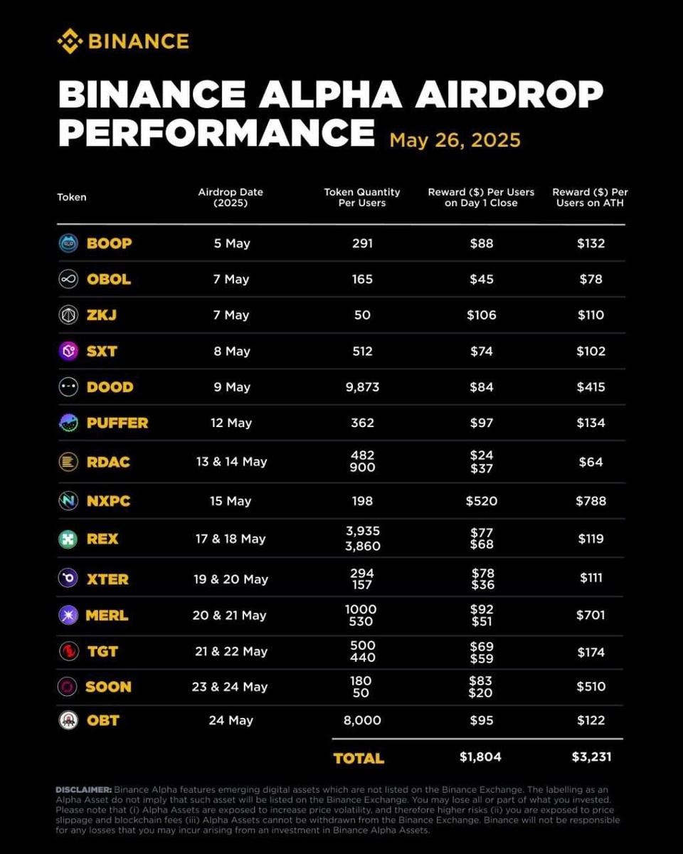 Binance опубликовал статистику дропов Alpha за май: