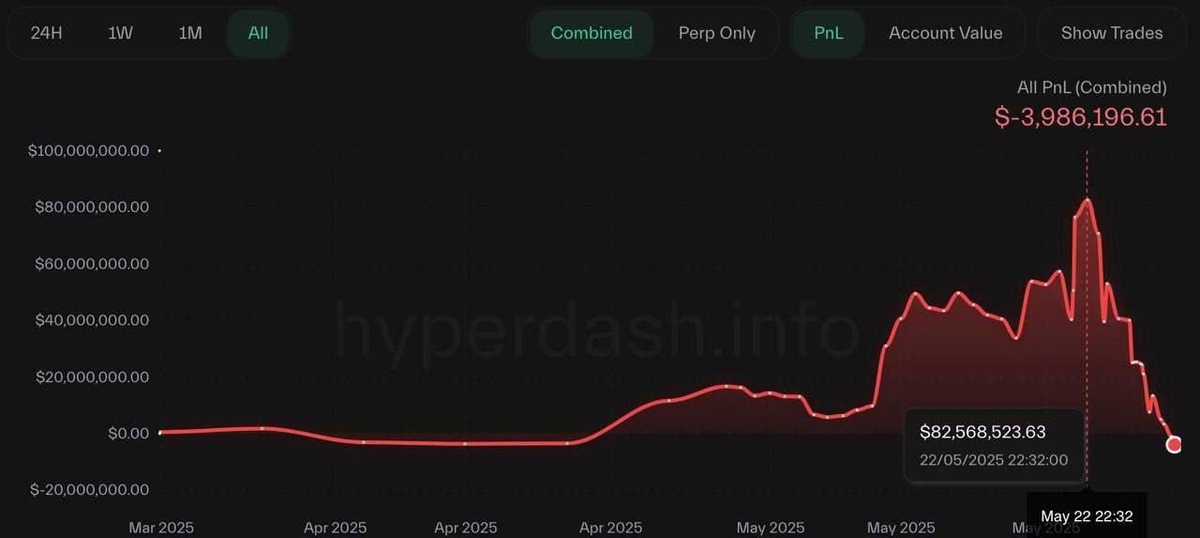 Трейдер Джеймс Уинн (дада тот самый кит) поднял свой капитал от 0 до 82 миллионов долларов за 70 дней торговли на бирже Hyperliquid, а затем