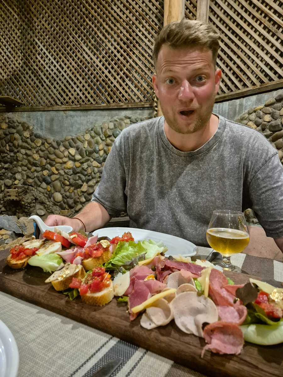 "Ребята, это какое-то волшебство!" - воскликнули мы, открыв меню ресторана и обнаружив невероятный ассортимент итальянских деликатесов. В Азии, где доминируют острые и пряные блюда, мы так скучали по знакомым вкусам нашей родины. И вот, словно оазис среди песчаных дюн, этот ресторан предложил нам настоящий праздник для гурманов. Первым делом нас очаровала внушительная доска с мясной и сырной нарезкой. На ней красовались тонко нарезанные сорта салями, прошутто, копченая грудинка, а также сыры varying degrees of maturity: от мягких сливочных до острых, с пикантным ароматом. К этой "картине вкуса" добавились классические брускетты с томатной пастой и базиликом, а также хрустящие тосты с ароматными грибами. Мы с упоением дегустировали каждый кусочек, наслаждаясь сочностью мяса, нежностью сыра и гармонией вкусов. Это был настоящий "привет" из Италии, который вернул нас на мгновение домой. На горячее мы, конечно же, выбрали пасту – блюдо, которое невозможно обойти стороной в любой италь