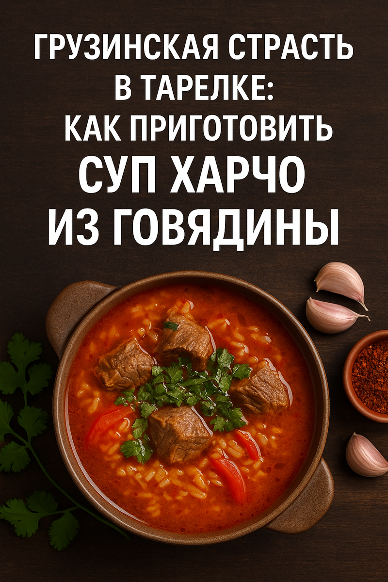Если бы грузинская кухня могла говорить, она бы делала это громко, с темпераментом и обязательно с душой. Суп харчо — её визитная карточка, взрыв вкуса и аромата, который невозможно забыть. Его история уходит корнями в древнюю Мегрелию, а сердце его — в говядине, пряностях и терпком соусе ткемали или пасте из алычи. Сегодня я расскажу, как приготовить настоящий харчо из говядины, чтобы вы смогли согреть не только тело, но и душу. Харчо — это не просто суп. Это целая философия вкуса. В классическом варианте он всегда готовится из говядины, с добавлением грецких орехов, чеснока, хмели-сунели и кисловатого ингредиента — чаще всего ткемали (сливовый соус) или томатной пасты с лимонным соком. Рис делает суп сытнее, а кинза и чеснок — ярче. Вот что понадобится на большую кастрюлю ароматного харчо (6–8 порций): Основное: Овощи и приправы: Харчо любят настояться. Дайте ему постоять под крышкой 15–20 минут перед подачей. Подавайте с лавашом или свежим хлебом, посыпав свежей зеленью. По жела