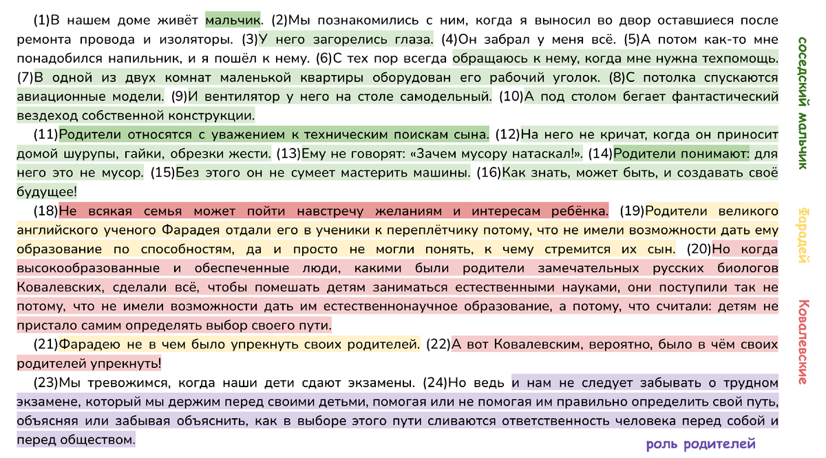 3) Соседский мальчик — размышления о роли родителей. Причинно-следственная связь: благодаря вниманию к увлечениям ребёнка родители помогают ему выбрать верный жизненный путь.