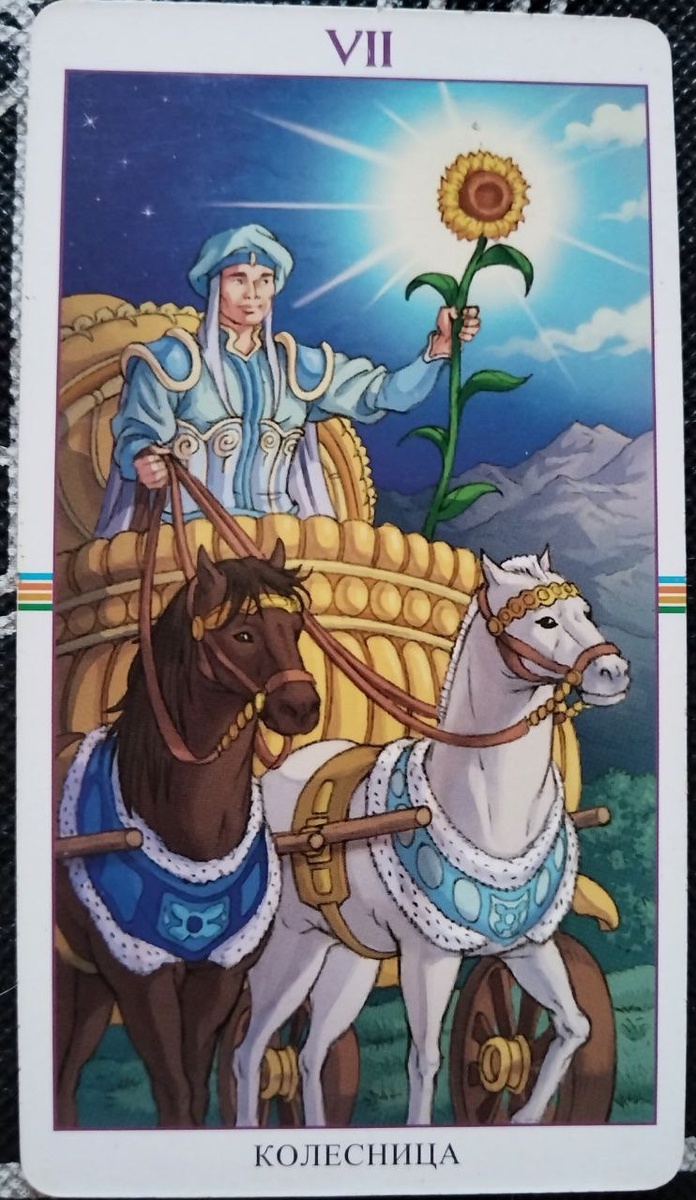 "Колесница" указывает на активное движение вперед и достижение целей. Это символ победы над трудностями и преодоления препятствий. В этот день вы можете почувствовать прилив энергии и желание двигаться к своим целям. Вам нужно будет направлять свои усилия и ресурсы в нужное русло, чтобы добиться успеха. Важно сохранять фокус и не отвлекаться на мелочи. Это время, когда вы можете проявить настойчивость и уверенность в своих действиях. Если вы столкнетесь с трудностями, не сдавайтесь – ваша решимость поможет вам преодолеть все преграды. Возможно, вас ожидает поездка или важные изменения в жизни, которые потребуют от вас адаптации и готовности к новому. Используйте этот день для того, чтобы активно двигаться к своим целям. Сосредоточьтесь на том, что вам нужно сделать, и не бойтесь принимать решения. Верьте в свои силы и управляйте ситуацией, не позволяя внешним обстоятельствам отвлекать вас. Ожидайте, что в этот день могут произойти события, которые потребуют от вас быстроты реакции и сп
