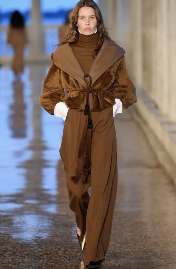В 2025 году коричневый станет одним из главных цветов осени/зимы, а цвет мокко-мусс объявлен Pantone цветом года. В этом смысле он вызывает чувства комфорта, тепла и аутентичности, а также отсылает к простоте, придавая любому образу ощущение защищенности.