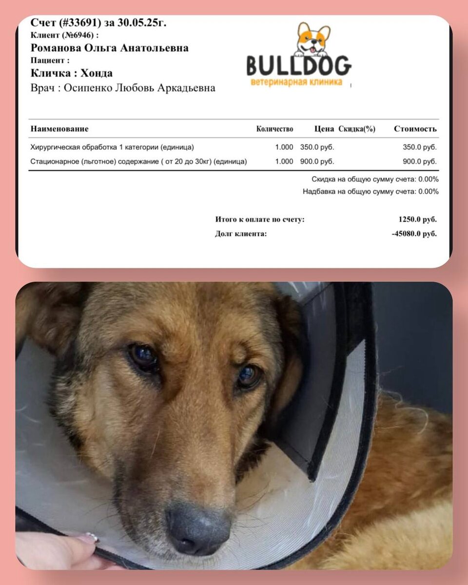 Хонда собака с оскольчатым переломом лапы. Ей проведена была уже не одна операция, сейчас ее ждет еще одна - снятие пластины, но для этого надо сделать контрольный снимок и получить добро от врача. Хонда очень добрая и отзывчивая собака, завоевала уже сердца всей клиники, но ей нужна наша помощь. Без оплаты долга за Хонду мы не сможем перейти к следующему этапу. Поэтому и проси вас о помощи. Находится Хонда в Вет клинике Бульдог города Владивосток. Если вы готовы и желаете помочь Хонде в ее пути к счастливой жизни приглашаем вас в группу с отчетами и приветами https://chat.whatsapp.com/JEl8V7qVtph0kI0xTp4WIk Оказать финансовую помощь в оплате счетов в клинике вы можете по номеру +7-924-739-79-62 Сбербанк Владимир Александрович Р ‼️ с пометкой «Хонда» ‼️