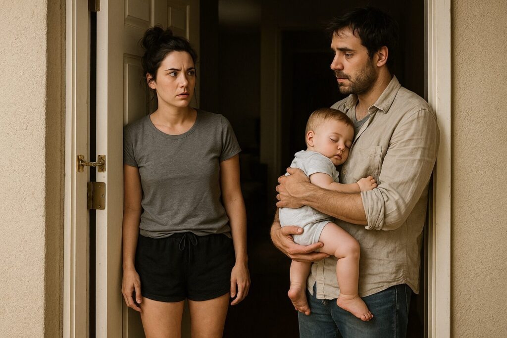 Инна приоткрыла дверь, не снимая цепочки. Роман стоял на пороге с младенцем на руках. Ребёнок спал, уткнувшись носом в отцовскую куртку. На вид — месяцев восемь, не больше.