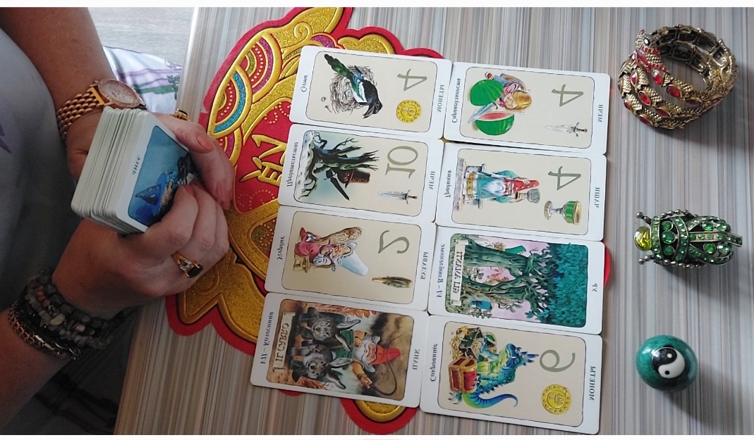 2. Человек находился ещё в стадии незрелой личности (Паж пентаклей). Не важно сколько ему лет, но ему ещё предстоит пройти долгий путь, к его совершенству. Из-за своей самонадеянности, и от недостатка знаний он может совершать разные ошибки. После совершения которых потом может жалеть о случившимся, своих утратах. Он не проявляет внимательность и осторожность к своим поспешным действиям. Он может не обращать внимания и не использовать, данные ему возможности которые ведут его к обучению и стабильности в его жизни. Он впечатляется мелкими ценностями, при этом может упускать реальные перспективы, для повышения роста своей личности. Он не придал значения, что он уже жил в отношениях, где было у него духовное родство, любовь, поддержка его второй половины, где он мог бы иметь радость и яркие перспективы для своего развития. Его женщина любила и уважала его, несмотря на его недостатки. Она не давала ему усомниться в себе, и он имел высокую самооценку. И от этого был капризный, и требовал к себе большего внимания, мог много говорить но при этом ничего не делать. Любил себя любимого. Он не привык над собой работать и вкладываться в отношения, он зависел от своей женщины которая вела его по жизни. Он не перегружал себя усилиями, и любыми путями старался избегать взваливать на себя тяжкий груз, брать на себя ответственность и вкладываться в отношения. Был хитёр и скрытен по отношению к своей женщине, извлекал свою выгоду. Он всегда надеялся на авось, на везение, а вдруг ему повезёт где-то, может где-то лучше, где его нет. И всё время для себя рассматривал какие-то новые возможности, или перспективы, и может попадать в сомнительные отношения, или в сомнительные сделки. О чём потом может сожалеть. и в очередной раз от своей неуверенности выбрав другие отношения, он попал впросак. Его заманчивые предложения оказались нищетой и бедностью, которая опустошила его карманы. Он в очередной раз не продумал свои действия и поддался на мелкие удовольствия, которые привели его к разбитому корыту. Над которым он теперь сидит и плачет. Понял что сам причинил себе разочарование, из-за своего узкого кругозора, скудного мышления, и не видя вокруг себя любящего его человека. Он понял что получил опять по башке, подзатыльник от Высших Сил, потому что пошёл неправильной дорогой. Судьба построила ему много препятствий на его пути, и проверяла его на прочность. И он в упор не видел, что рядом с ним уже есть любящая его женщина, которая заботится о нём, и потыкает его капризным, которое может пожалеть и приголубить его, накормить и напоить и спать уложить (Королева кубков). Но он пошел по своей легкомысленности, в ветренную любовь.
