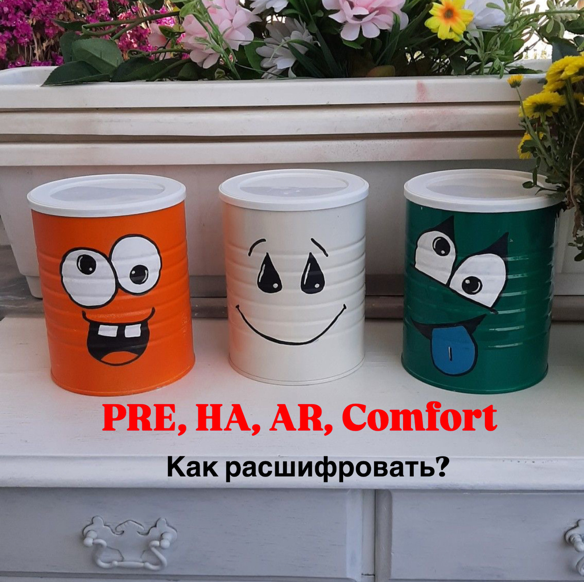 Многие мамы теряются при виде непонятных сокращений на банке смеси: PRE, HA, AR, Comfort… Расшифровываю — просто и по делу: