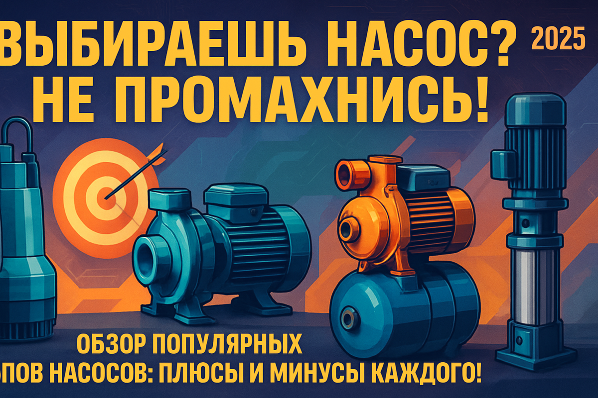 Выбираете насос — для дачи, дома, скважины или производства? На первый взгляд всё просто: «взял и купил». А потом — низкое давление, шум, перегрев, поломки и куча выкинутых денег. Чтобы этого не произошло с вами — держите подробный, но простой обзор самых популярных типов насосов, с плюсами, минусами и практическими советами. После прочтения вы будете разбираться в насосах лучше, чем продавцы в магазине! Как работает: Разгоняет воду лопастями, создавая центробежную силу.
