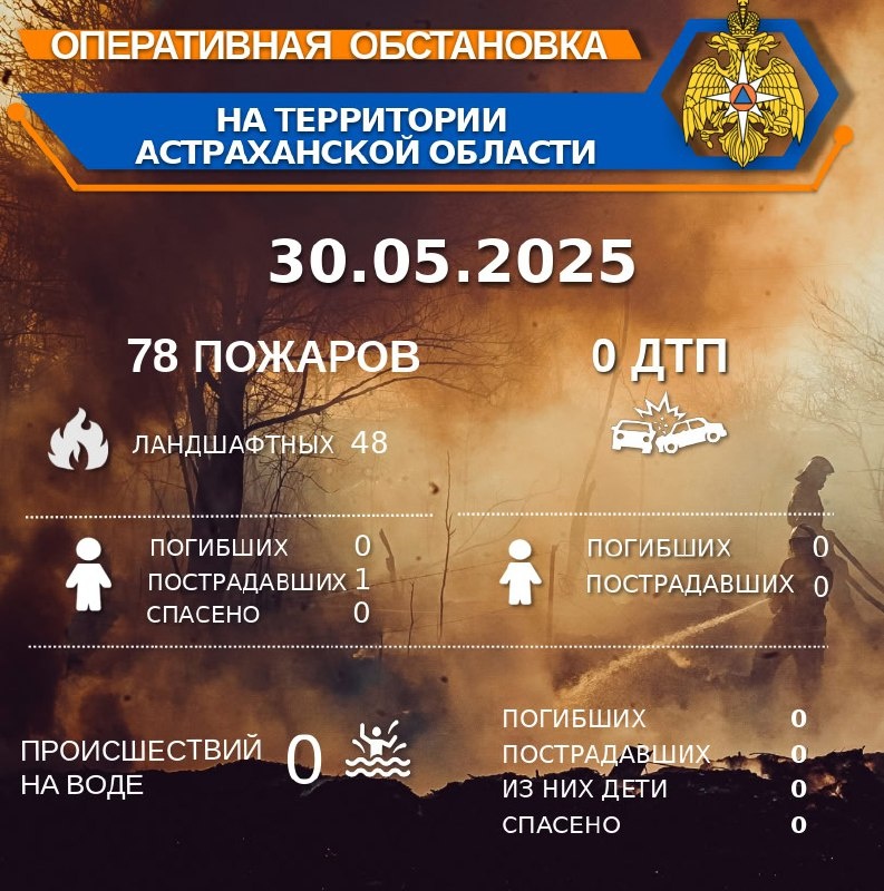 🚨Оперативная обстановка на территории Астраханской области по состоянию на 00:00 30.05.2025🚒