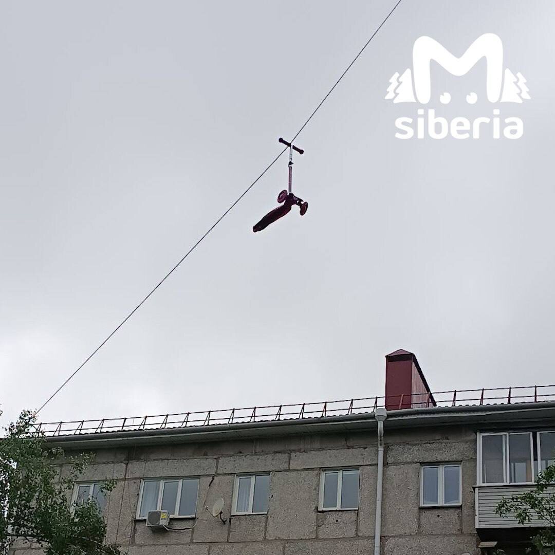 Подальше от детей: в Горно-Алтайске самокат был повешен на провода