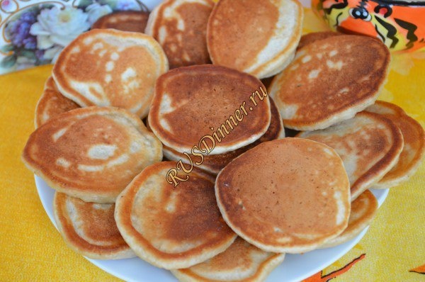 Банановые оладьи От автора: Банановые оладьи помогут Вам разнообразить Ваши завтраки, добавьте немного бананового вкуса. Ингредиенты: Бананы - 220 гр. (1 шт) Молоко - 200 мл. Мука - 170 гр. Разрыхлитель теста - 7 гр. (1 ч. л.) Соль - 1 гр. (щепотка) Сахар - 50 гр. (2 ст. л.) Мускатный орех тертый - 2 гр. (0,5 ч.л.) Масло растительное - 60 мл. (для смазывания сковороды) Источник: https://rusdinner.ru/page/bananovye-oladi