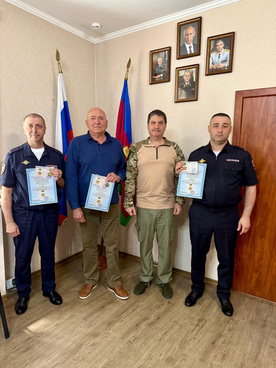 На станции Кавказская Северо-Кавказской железной дороги состоялось торжественное мероприятие, посвященное 80-летию Победы в Великой Отечественной войне Наградной комитет АНБО "Русский Ветеран-Доброволец" отметил вклад сотрудников правоохранительных органов в поддержание патриотизма и активную гражданскую позицию. Председатель наградного комитета, Юрий Иванов, вручил почетные знаки "Звезда Патриота" начальнику Линейного отдела МВД России на ст. Кавказская Лорису Вартаняну, заместителю начальника ЛО МВД России на ст. Кавказская Олегу Гиссу, а также председателю Совета ветеранов ЛО МВД России на ст. Кавказская Андрею Браславцу. Награда стала признанием их заслуг в деле воспитания патриотизма и любви к Родине, особенно в преддверии знаменательной даты – 80-летия Великой Победы. Вручение наград прошло в торжественной обстановке, подчеркивая значимость события и важность вклада каждого награжденного в сохранение исторической памяти и воспитание подрастающего поколения в духе патриотизма.