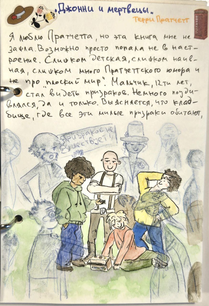 Я люблю Пратчетта, но эта книга мне не зашла. Возможно просто попала не в настроение. Слишком детская, слишком наивная, слишком много Пратчеттского юмора и не про «плоский мир». Мальчик, 12ти лет, стал видеть призраков. Немного поудивлялся, да и только. Выясняется, что кладбище, где все эти милые призраки обитают, город продал компании для застройки, не то торгового центра, не то ещё чего-то подобного. Призраки негодуют, как так, этож их «дом»! Надо срочно что-то решать. Решать отправляют мальца. И пока тот раздумывает, как бы вернуть кладбище городу, призраки выясняют, что они, оказывается, могут выходить за пределы кладбища, шастать по проводам и «путешествовать». На собрании города, пацан выступает в защиту кладбища, кидает речь и вуаля — победа. Кладбище остаётся при городе, но призракам уже пофиг, они познали дзен и свалили в закат. Конец. Много английских шуточек и каламбуров. Есть призрак коммунист, что отвергает само понятие загробного мира и призраков как таковых. Вроде как и