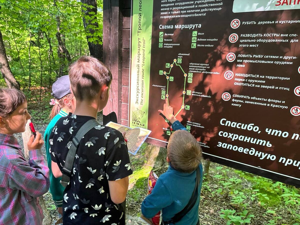 Занятие эко-клуба «Знатоки Земли леопарда» прошло на экологической тропе «Тропой леопарда» в рамках акции Русского географического общества «НЕуроки географии» 29 мая 🌍 «НЕуроки географии» знакомят участников с природным и культурным наследием России в необычном и увлекательном формате. Ребята посмотрели материалы о работе РГО, а также познакомились с биографией путешественника, учёного и исследователя Дальнего Востока — Владимира Клавдиевича Арсеньева. На специально оборудованном участке маршрута сотрудники отдела экологического просвещения рассказали подрастающему поколению о методах исследования, быте и научных интересах путешественников прошлых лет. У каждого участника был свой Дневник путешественника. Заполняя его, ребята учились самостоятельно планировать маршрут и исследовать природу края. В завершение мини-экспедиции участников ждало чаепитие в уютной беседке, где обсуждались ключевые моменты биографии великого путешественника. 🐆 Здесь «Земля леопарда»