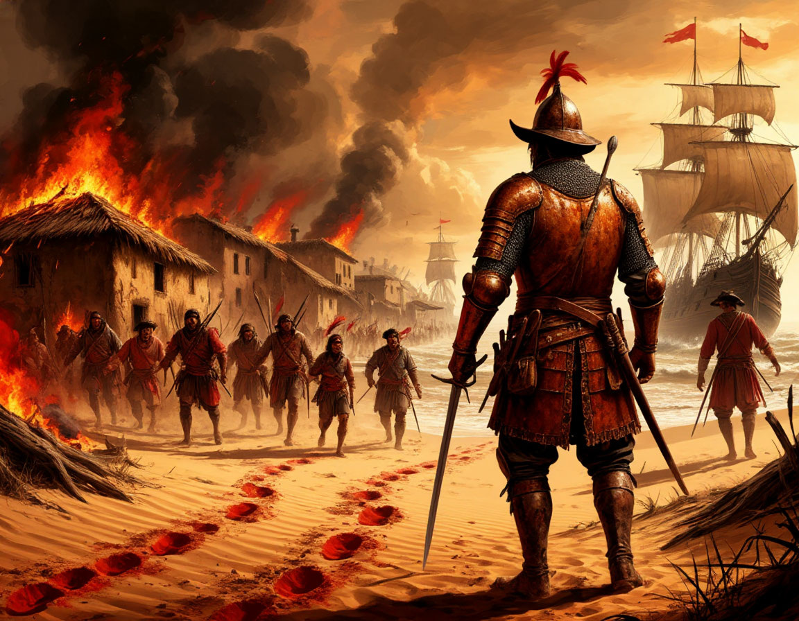 30 мая 1539 года у берегов современной Тампа-Бэй высадился Эрнандо де Сото — уже богатый конкистадор, разграбивший империю инков, мечтал повторить успех Кортеса и Писарро. За 4 года превратит юг США в зону геноцида. Его экспедиция, начавшаяся с «мирного» объявления Флориды владением Испании, оставила за собой: В день высадки де Сото совершил ритуал, предписанный королём: Ирония: Местные апалачи, принявшие испанцев за богов, уже через неделю называли их «демонами». Первый акт насилия: Источник: Записи Родриго Ранхеля, казначея экспедиции (Relación verdadera de la Florida, 1546). Зимой 1540-41 годов, когда закончились припасы: Важно: Это единственный задокументированный случай каннибализма среди европейских колонизаторов в Северной Америке. К 1543 году (после смерти де Сото) экспедиция: Современные исследования: ДНК-анализ подтвердил, что у народа кадо (потомки жертв де Сото) до сих пор сохранились генетические мутации от стресса той эпохи. P.S. Если поедете во Флориду — посетите Мыс Де