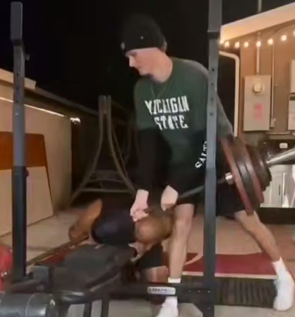 Страховка — уровень бог!) Пацанчик не плохо так ударился, но всё обошлось, травма минимальна, всегда будьте осторожны при занятии штангой