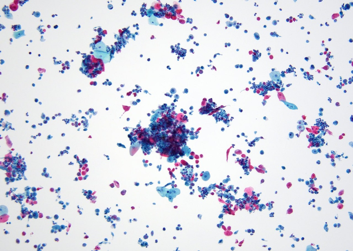 Чистая плоскоклеточная карцинома мочевого пузыря Свободно выпущенная моча. Препарат жидкостной цитологии (ThinPrep), объектив 10x, 60x. #мочевыделительнаясистема #цитология #мочевойпузырь #моча