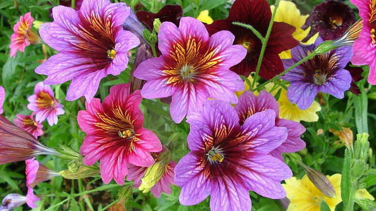 Этот цветок способен соперничать с популярной петунией практически во всём. Внешним видом он напоминает её — те же привлекательные воронковидные цветки-граммофончики, только дополнительно украшенные тонкой узорчатой сеткой, создающей иллюзию внутреннего сияния. А ещё сальпиглоссисы удивительно долго сохраняют свежесть в срезке! Цветовая палитра весьма обширна: от белоснежных оттенков до нежно-кремовых, ярко-жёлтых, нежнейших розовых и многих других. Растение легко развивается из семян, стремительно растёт и радует своим цветением вплоть до наступления холодов, при условии, что обеспечиваются необходимые условия ухода: — солнечный участок;