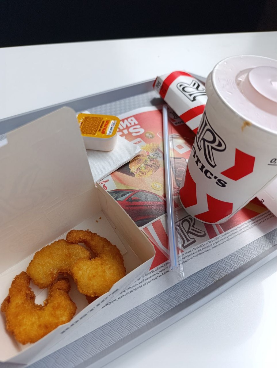 Жизненно важный обзор, во-первых,название ростикс - это из моего детства ,откатились так сказать к истокам. Во-первых ,взяла ролл с перцем, положили с сыром. Но фирменный соус с сыром и Чили - отвал!! Такое обожаю , с ним можно съесть,что угодно.. Ну и главное, в этот жаркий (нет) мне приспичило взять напиток с названием МАЙ ТАЙ с колотым льдом, и меня унесло просто в турецкий отпуск )))) такой вкус прям реально коктейль,ну рюмка рома туда и точно 😅😅 Просто летний лайфхак на заметку 😏 Пятница или что ?)))